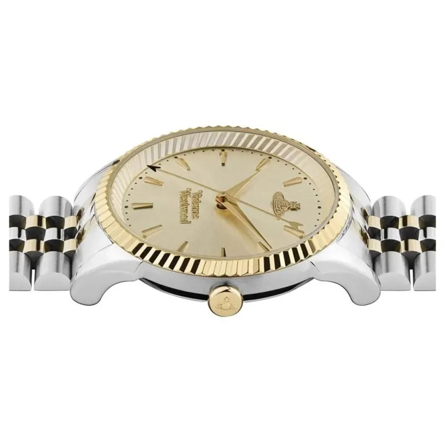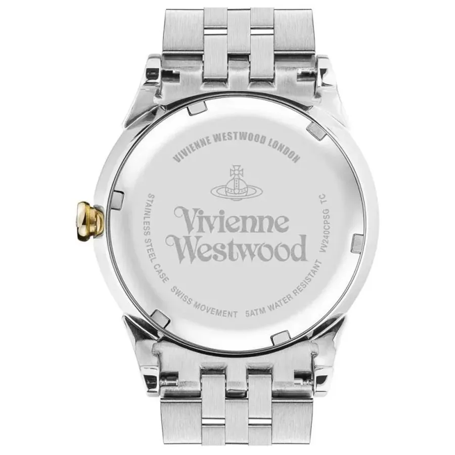 Thiết kế độc quyền, sang trọng: Vivienne Westwood là thương hiệu thời trang Anh Quốc nổi tiếng với phong cách táo bạo, cá tính. Mẫu đồng hồ này kế thừa trọn vẹn tinh thần đó với mặt số tròn cổ điển cùng các chi tiết mạ vàng bạc tinh tế, tạo nên vẻ ngoài vừa thanh lịch, vừa phá cách.