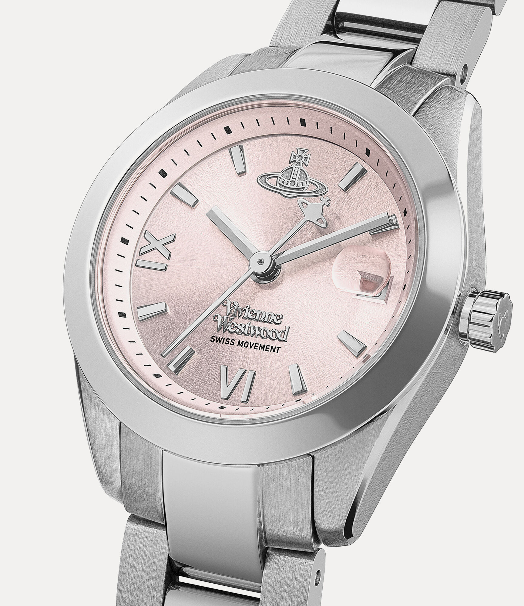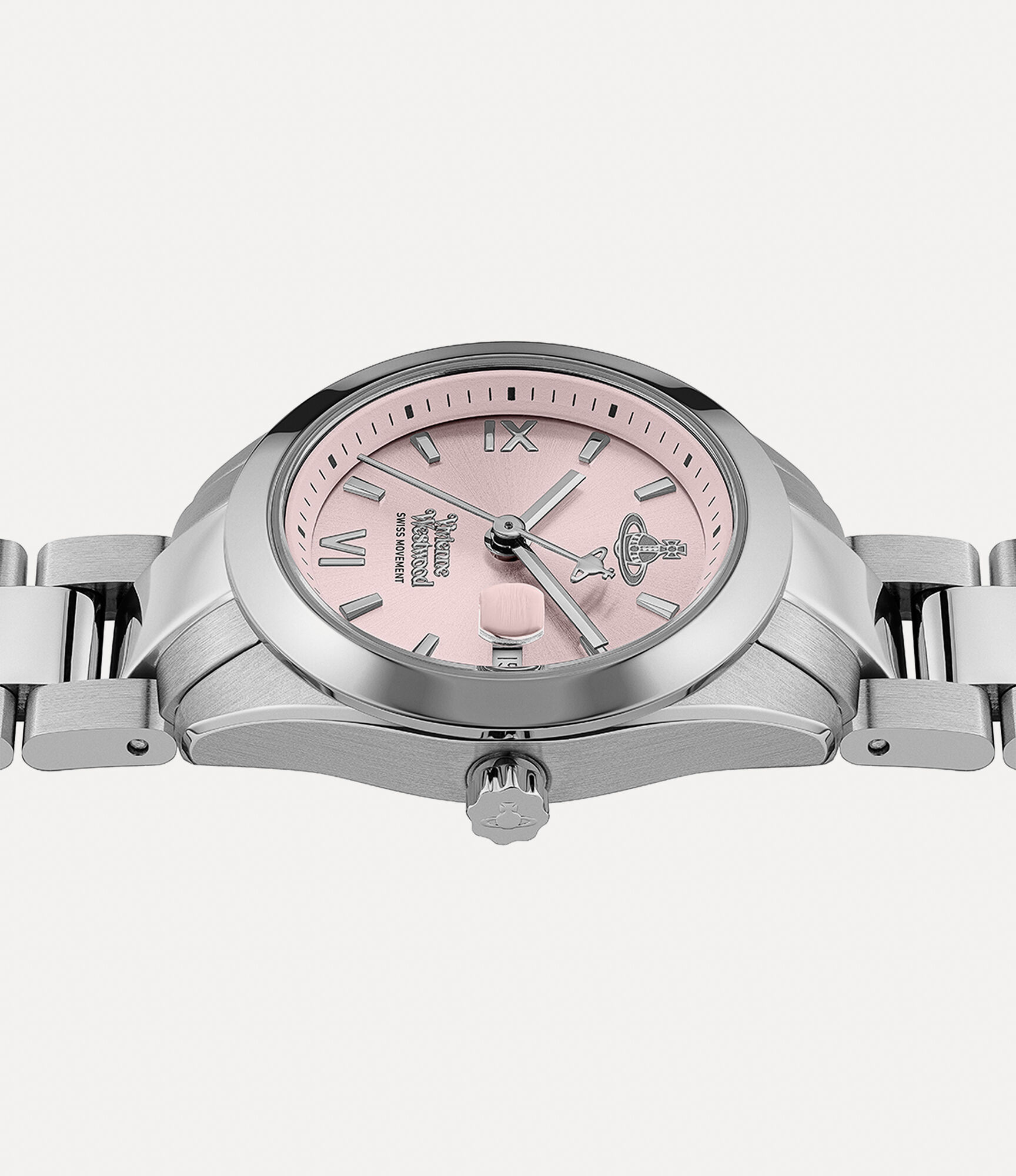 Đồng hồ nữ Vivienne Westwood Fenchurch Pink Silver Watch là sự kết hợp hoàn hảo giữa tinh thần punk-luxury và nét đẹp thanh lịch. Lấy cảm hứng từ khu tài chính Fenchurch Street, chiếc đồng hồ toát lên sự năng động của thành phố London nhưng vẫn giữ được vẻ mềm mại, nữ tính qua gam hồng pastel trên mặt số. Đây là lựa chọn lý tưởng cho những cô nàng muốn thể hiện phong cách hiện đại mà không kém phần sang trọng.